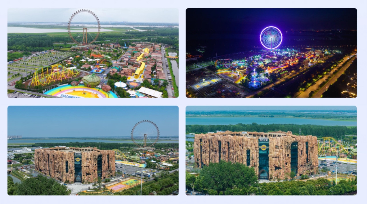 松鼠小镇坐落于安徽芜湖弋江区,以三只松鼠 IP为核心,打造出 2.5 次元奇幻世界。小镇占地 247.5亩,融合森林元素与长江自然景观,形成“松鼠星球馆、森林奇幻地、松鼠欢乐街”三大功能区。标志性 133 米高摩天轮 “ 松鼠大风车 ” 被誉为 “长江之眼”,松果座舱可俯瞰江景与小镇全景,转一圈 1314 秒寓意浪漫。