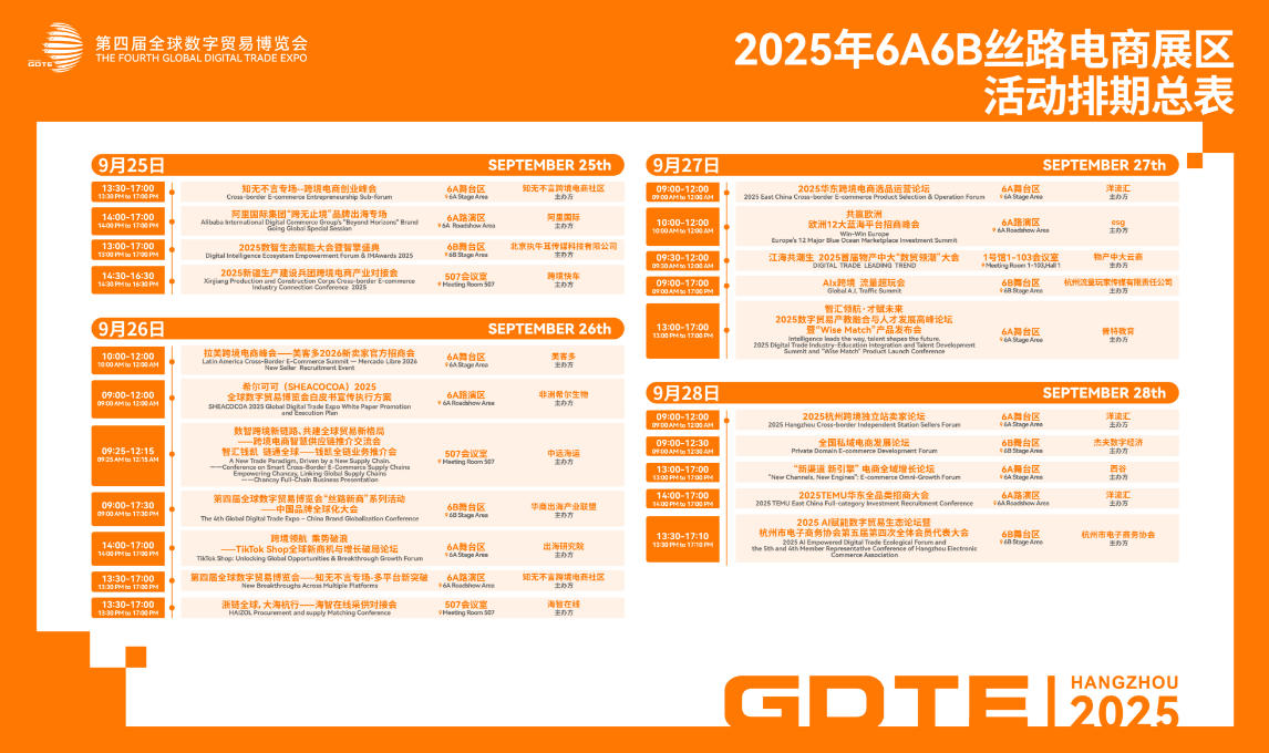 大会还将设置一对一咨询环节,卖家可直接与50+平台的招商经理面对面沟通,获取第一手入驻信息和解惑答疑。抓住2025年全球电商平台对中国卖家开放的历史机遇,从单平台运营转向多平台布局,共同开拓跨境新蓝海,请关注9月25—9月29日,第四届全球数字贸易博览会“丝路新商”系列活动!